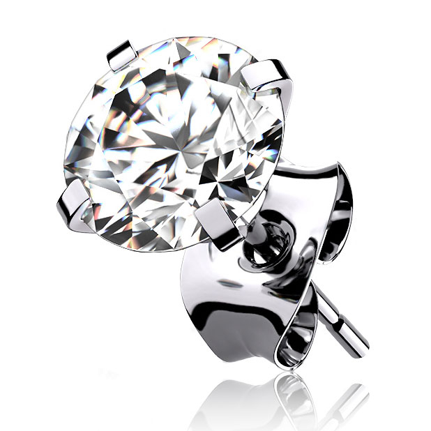Jeżeli szukasz czegoś wyjątkowego do swoich przekłutych uszu, wypróbuj tytanowej biżuterii. Oto prosta wkrętka z pięknym, przezroczystym kamieniem z przodu. Materiał biżuterii to hipoalergiczny tytan, który nie zawiera niklu. Z tego samego powodu tytan jest używany jako pierwszy kolczyk zaraz po wykonaniu przekłucia. Ty wybierasz jak duży powinien być kamień z przodu. Jest on dostępny od 2 mm. Jeżeli masz wiele kolczyków w uchu, wypróbuj różnych rozmiarów kamieni, które pięknie będą prezentować się w rzędzie.