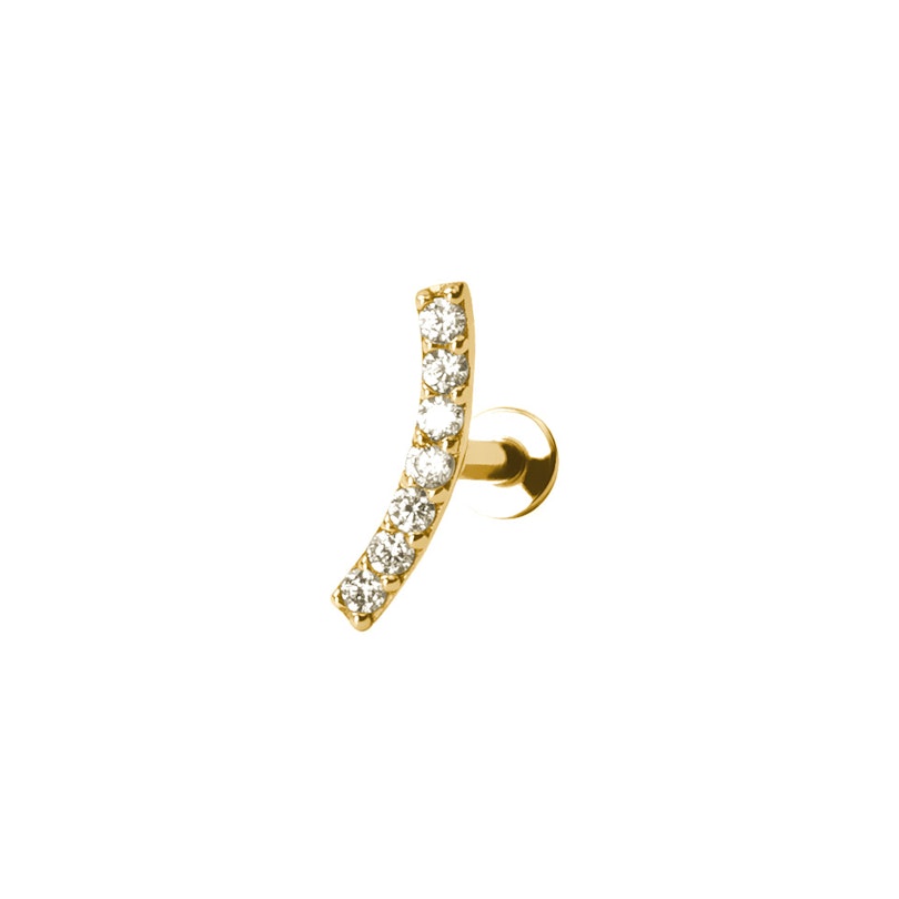 Wpychany labret wykonany z 14k złota z łukiem zdobionym cyrkoniami