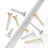Teraz masz możliwość zakupu luźnego labretu z 14-karatowego złota. Pręcik nie jest wyposażony w gwint, a zamiast tego ma głęboki otwór do którego pasuje naszych kilka wpychanych topów. Innymi słowy pręcik nie ma gwintu.