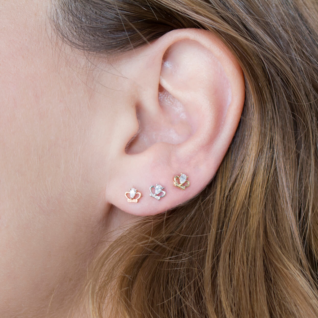 Ten labret zdobiony jest z przodu piękną koroną. Jest ona oferowana w różnych kolorach. Wszystkie modele mają taką samą długość, grubość i kolor kamienia. Na środku korony znajduje się mały, przezroczysty kamień w kształcie odwróconej łzy. Z tyłu korony widać małą nakładkę, którą wciska się w pręcik, co też oznacza że ten model nie ma gwintu do przykręcania. Jeśli zapięcie jest zbyt luźne, spróbuj lekko zagiąć pręcik.