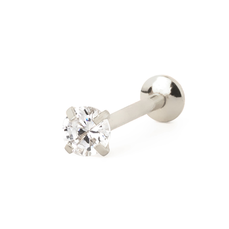 Wpychany labret zdobiony przezroczystym kamieniem