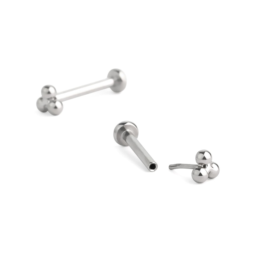 Labret to uniwersalny kolczyk, który można nosić w wielu piercingach, a ten minimalistyczny wzór łatwo łączyć z inną biżuterią. Jeśli szukasz nowego dodatku do swojego piercingu ucha, lub zabawny wzór do przekłucia ust, jesteś we właściwym miejscu. Top zbudowany jest z trzech kulek i ma rozmiar 3 mm, a sam labret oferowany jest w różnych rozmiarach, aby jak najlepiej dopasować go do rozmiaru piercingu.