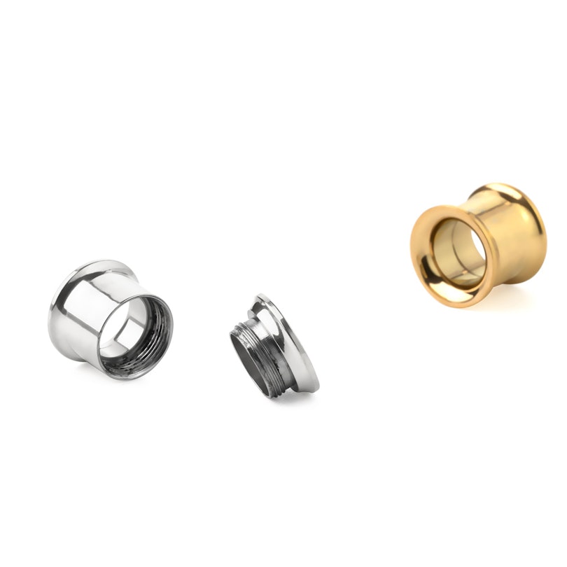 Ten piękny tunel ma wyjątkowy design i wygląda bardzo klasycznie, kiedy nosisz go w uchu. Jest wykonany ze stali chirurgicznej i pokryty warstwą koloru. Stal jest najczęściej wykorystywanym materiałem w wyrobie biżuterii do piercingu, a ten model jest oferowany w luksusowej, złotej edycji.