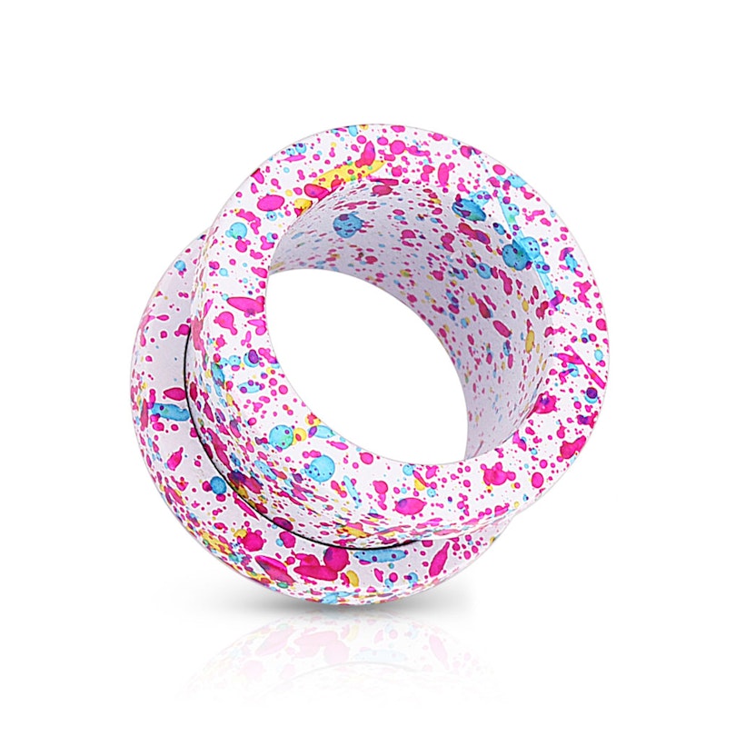 Ten tunel będzie idealny dla tych, którzy uwielbiają nosić żywe kolory w uchu. Jest wykonany ze stali chirurgicznej i dostępny w różnych rozmiarach od 3 mm do 16 mm. Wzór zainspirowany jest rozpryskaną farbą pędzla, która tworzy drobne plamki w żywych kolorach.