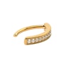 To efektowane kółko clicker do pępka zdobione jest rzędem przezroczystych kamieni, które dodadzą uroku Twojemu stylowi. Lekkie zakrzywienie tego kółka clickera oznacza, że znajduje się ono bliżej ciała niż tradycyjne kółko, dzięki czemu jest bardzo praktyczne w użyciu. Wykonane z tytanu klasy do implantów, co oznacza, że jest hipoalergiczne, lekkie i trwałe.