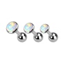 Ten świetny zestaw do piercingu uszu, to zestaw trzech kolczyków o słodkich kolorach i opalizujących kamieniach. Zrobią one jeszcze większe wrażenie, jeśli będziesz je nosić wszystkie na raz. W każdym zestawie kamienie mają odpowiednio rozmiary 3, 4 oraz 5mm.