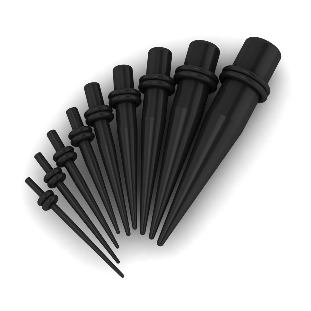 Wszystkie zestawy taperów są wykonane z akrylu, bardzo hipoalergicznego materiału, który nie wydziela niklu lub innych metalicznych substancji. Są one zatem bezpieczne w użyciu, nawet dla tych którzy mają lub boją się ewentualnej alergii.